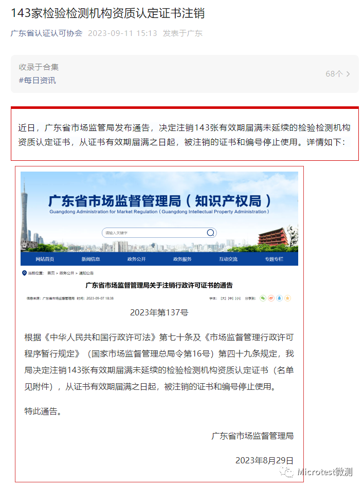 微測檢測公司謹此聲明,關(guān)于《143家檢驗檢測機構(gòu)資質(zhì)認定證書注銷》的消息屬實,并符合正常程序。根據(jù)規(guī)定,證書到期后,舊證書將被注銷,新證書生效。微測檢測在2023年1月進行了證書的有效期延續(xù)更新,于2023年3月27日獲得新的CMA證書。