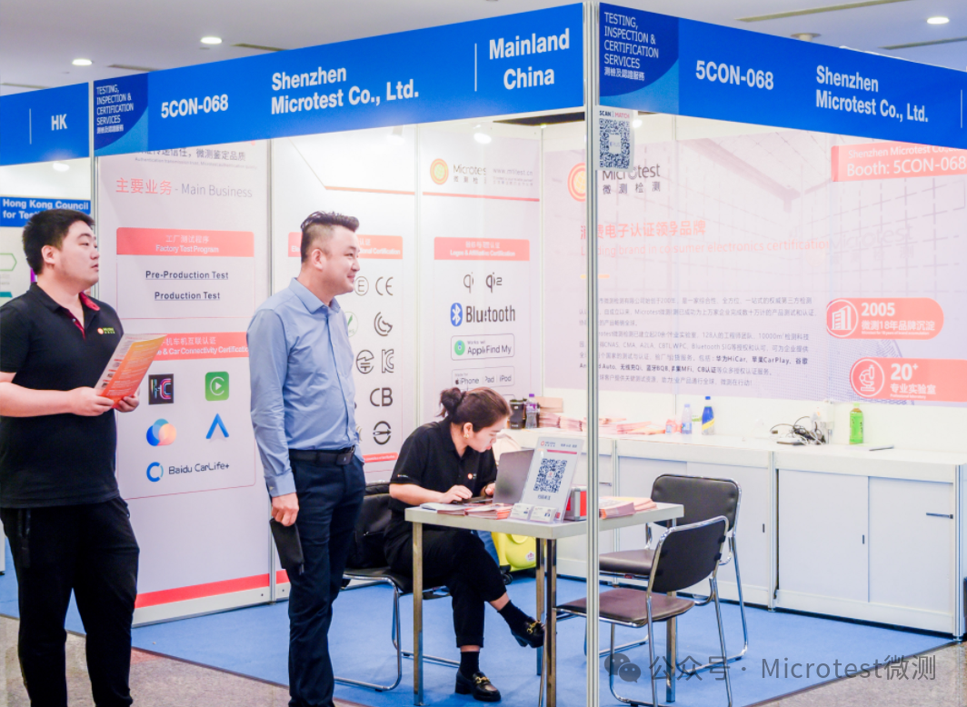 展會現場,我司認證同事為前來微測檢測展位咨詢的客戶一對一答疑解惑,以專業的檢測認證知識和優質的服務給咨詢者留下了良好的印象。