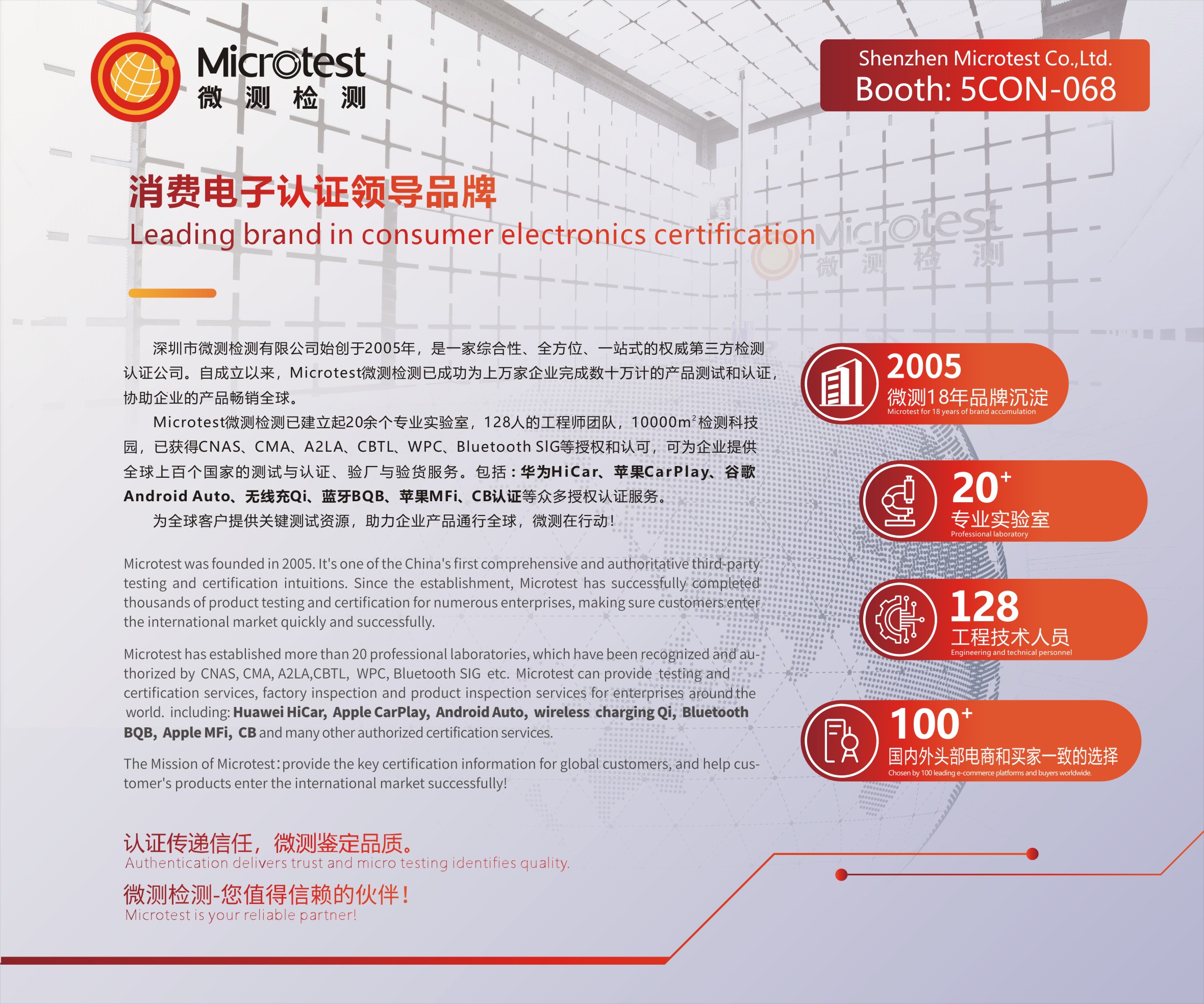 一站式服務:Microtest微測擁有二十余個專業實驗室和團隊,企業通過微測檢測就可以獲得一站式的測試與認證解決方案(EMC、RF、MFi、BQB、QI、USB、安全、鋰電池、快充、汽車電子EMC、汽車手機互聯、語音通話質量) 。