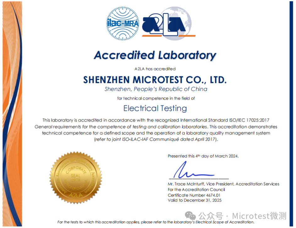 美國實驗室認可協會(A2LA)作為美國規模最大的實驗室認可機構,也是國際實驗室認可合作組織(ILAC)的成員之一。A2LA 的認可流程依據國際標準執行,旨在確保被認可組織具備相應的技術能力以及完善的質量管理體系,從而持續產出可靠、精準、可信的結果。通過 A2LA 認可的實驗室,在質量管理體系、技術實力、人員資質、設備校準等多個維度均符合國際權威標準,能夠為全球不同行業和客戶提供高質量的檢測服務。