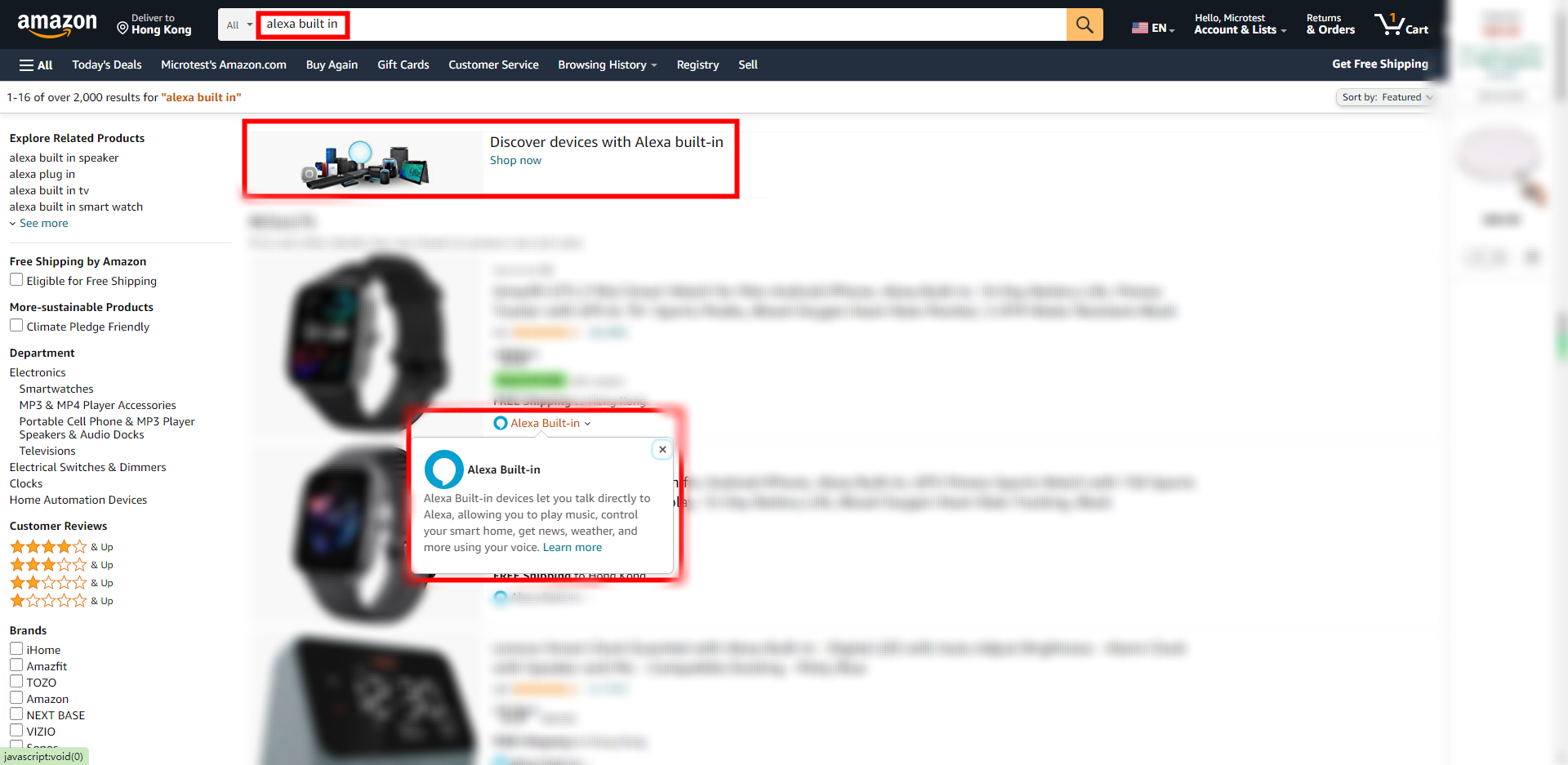 以上是在亞馬遜網(wǎng)站上搜索Alexa Built-in的檢索內(nèi)容