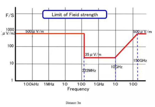 特別提醒:在做Telec/MIC認證時,目前市場上的低輸出無線電話、無線話筒、應急報警發射機、FM發射機等如果發射功率小于下圖的的限值,則此功能可以不做認證。